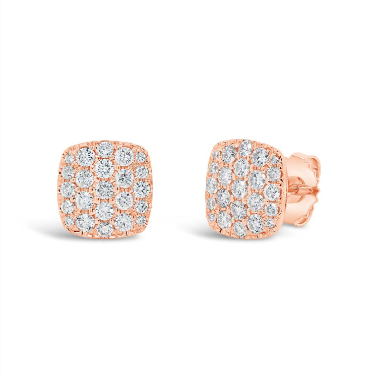 1.10ct 14k Rose Gold Diamond Pave Stud Earring