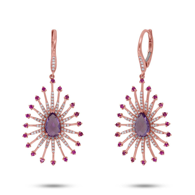 0.54ct Diamond & 2.07ct Pink Sapphire & Amethyst 14k Rose Gold Earring