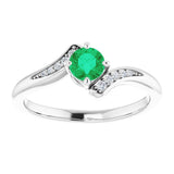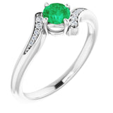 71993 / Ring / Set / 14K White / Natural Emerald / Round / 4 Mm / Natural Diamond / Polished / Natural Emerald And .04 Ctw Natural Diamond Ring