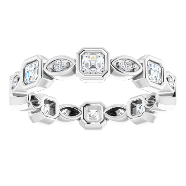 123632 / Band / Set / 14K White / 5 / Natural Diamond / Asscher / 3 X 3 Mm / Vs, Ghi :: 1 1/4 Ctw / Polished / 1 1/4 Ctw Natural Diamond Eternity Band
