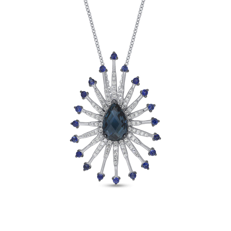 0.35ct Diamond & 2.03ct Blue Sapphire & London Blue Topaz 14k White Gold Pendant