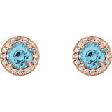 14K Rose 5 mm Natural Blue Zircon & 1/8 CTW Natural Diamond Earrings
