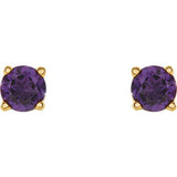 1874 / 14K Yellow / Set / Round / Natural Amethyst / Pair / 4 Mm / Friction / Friction Backs Included / 4-Prong / Polished / Natural Amethyst Stud Earrings