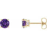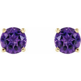 1874 / 14K Yellow / Set / Round / Natural Amethyst / Pair / 5 Mm / Friction / Friction Backs Included / 4-Prong / Polished / Natural Amethyst Stud Earrings
