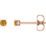1874 / 14K Rose / Set / Round / Natural Citrine / Pair / 2.5 Mm / Friction / Friction Backs Included / 4-Prong / Polished / Natural Citrine Stud Earrings
