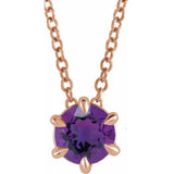 14K Rose 5 mm Natural Amethyst Solitaire 16-18" Necklace